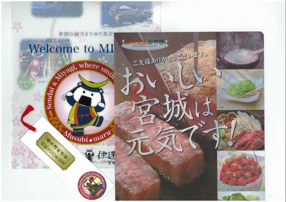 宮城県さまより「宮城県グッズセット」をいただきました。クリアファイル2種としおりのセットです。