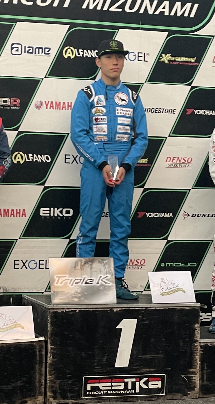 ROTAX MAX GRAND FINALS 2022 PORTUGAL への出場権をかけて、当該年間ランキングの順番に割り振られる”ゼッケン1”で戦った MAX FESTIVAL APG で奮闘する姿を直筆の感謝メッセージを添えてA4版フォトフレーム入りでお届けします。普段は”95”をつけているので、あまり見ることの無い姿です。