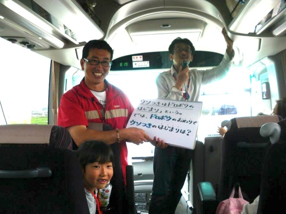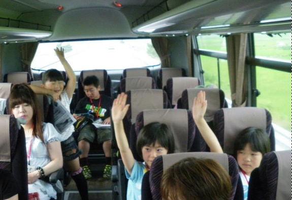 バスの中では、なぞなぞや今回のツアーに関連した理科・社会クイズ、歌の時間などで楽しみました。