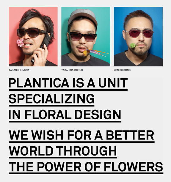 いけばなの美学をもとに、コンテンポラリーな花のディスプレイやアレンジを手がける、フラワーアート・ユニット。フランス放送局「Canal Plus」のドキュメンタリー番組やファッション誌「Bloom Magazine」の取材など、海外メディアにも注目される。次世代の花の表現を追求した、ニューエイジなフラワー・チルドレン。