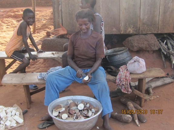 お餅と言っても原料は日本のそれと異なります。プランテーンという大きいバナナ又はヤムイモと、キャッサバという芋から作られています。