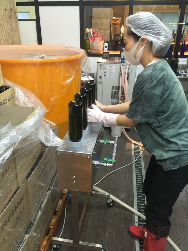 お盆の前にワインのボトル充填作業が始まりました。