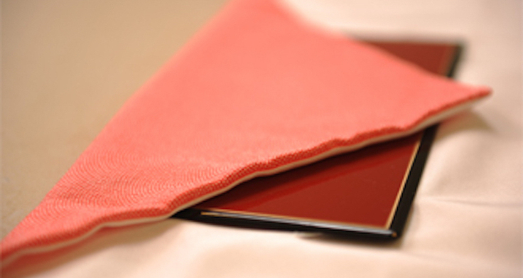 袱紗(ふくさ)は贈り物を包む方形の布です。そこには包装としての実用性はもちろんのこと、のし袋や水引きがくずれることを防ぐという心遣いが込められています。
