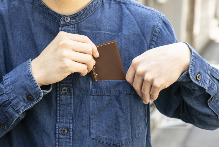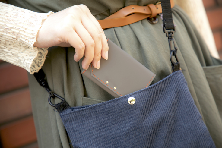 多くの方が使用している長財布や二つ折財布は、ポケットに入れづらかったり落としてしまうこともあり、持ち運びに適しているとは言えません。[fu・ku・sa]は胸ポケットに簡単に収まるサイズですので、ちょっとしたお出かけやお散歩にでる時にスマートに持ち歩くことができます。