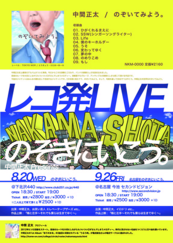 そんなお話しもはさみつつ、メインは中間正太さんのNEWアルバム発売に合わせたイベントになりますので、素敵な音楽がたっぷり聞ける楽しいイベントになる予定です。