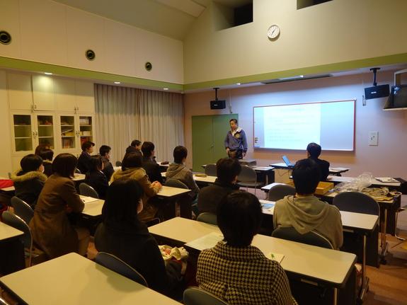 (説明会でも真剣に耳を傾ける子どもたちと保護者のみなさん)