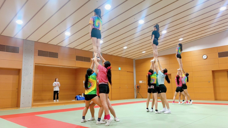 人数によってそれぞれポジションや立ち位置、動線などが変わるので最初こそ混乱も見られましたが、今ではどちらの演技もビシッととキメてきます!!みんなさすがのチア嗅覚の良さ!