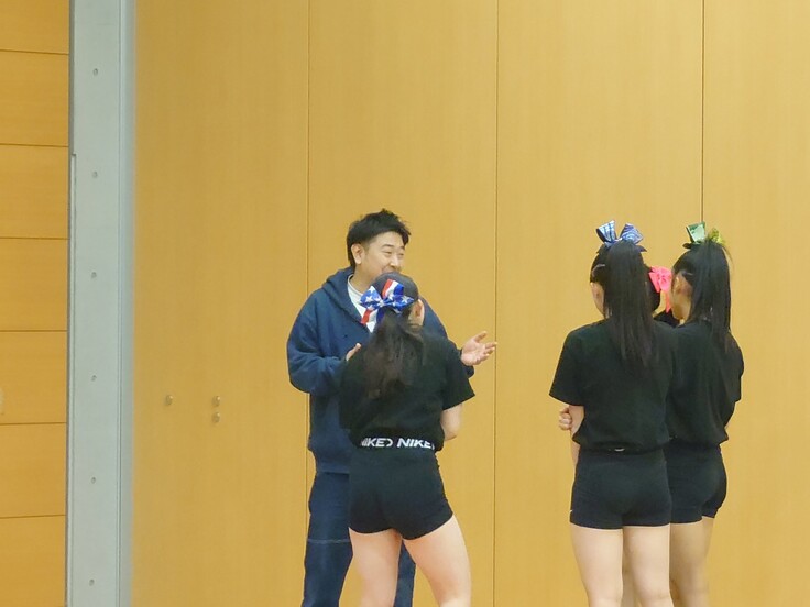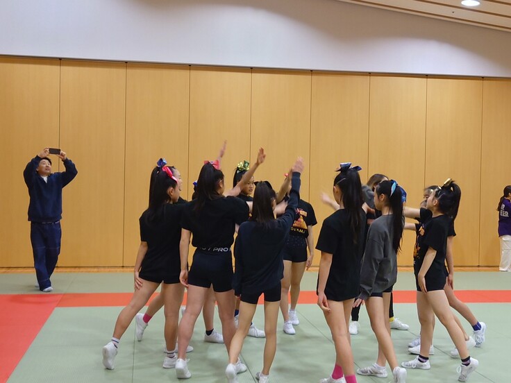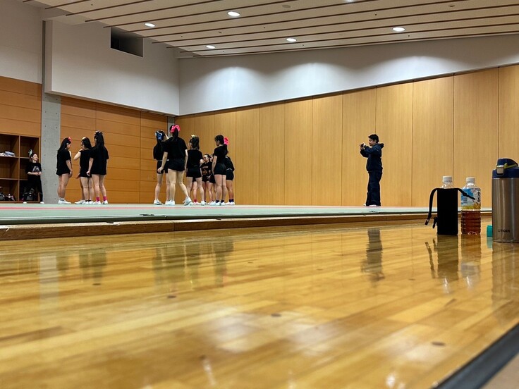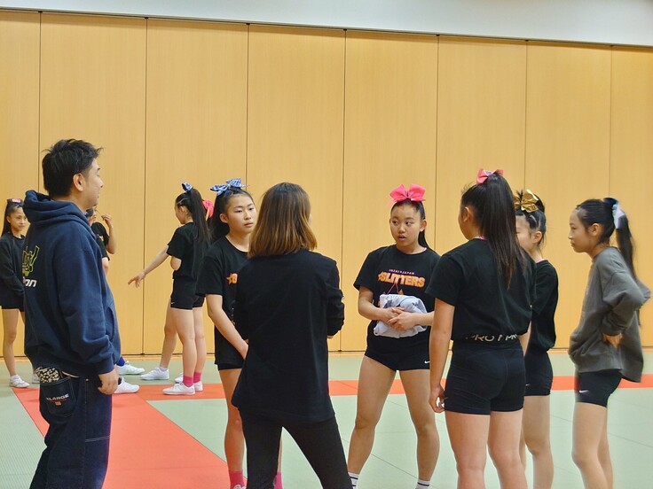 普段はコーチとメンバーだけの練習空間ですが、見学者がいらっしゃると不思議と気持ちが引き締まります。「人に見られる」事を意識することは、チアの演技をする上での「魅せ方」へ繋がっていくと思います。