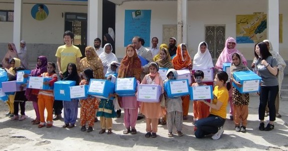 (パキスタンの学校に現地で働くスタッフが支援品を届けに行きました)