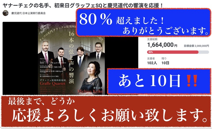 後10日!目標額達成まで、応援よろしくお願い致します!!