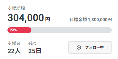 みなさまの貴重なご支援により開始より10日目で約20%を突破致しました!