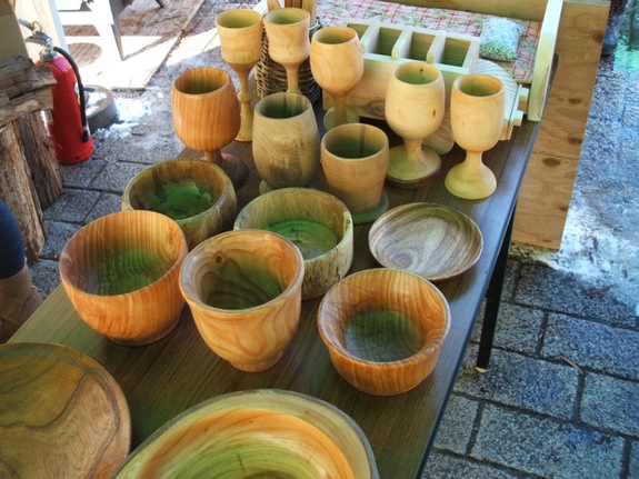 工房で間伐材を使って作った様々な作品も、多くの人達に見てもらいお買い上げいただきました。薪割り体験も、女性や子供を含む多くの人達にご参加いただき
