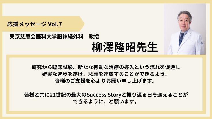 慈恵医大 柳澤隆昭先生より、応援メッセージをいただきました!