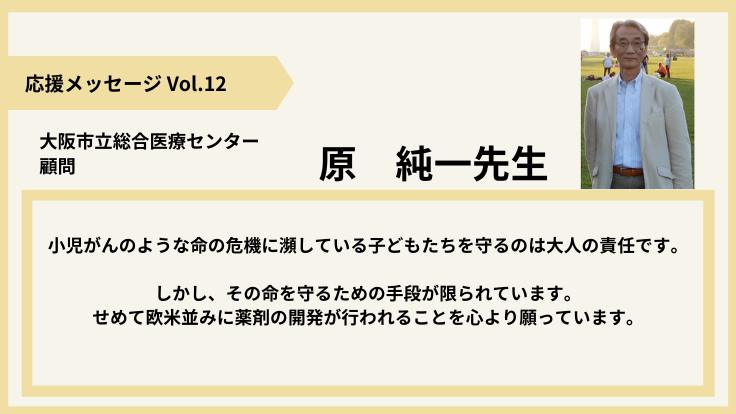 大阪市立総合医療センター 原純一先生より応援メッセージを頂きました!