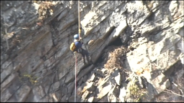 また環境省事業に協力し、使用できなくなったイヌワシの巣の補修を、全国6地域で実施した経験もあります。断崖絶壁にあるイヌワシの巣をザイルにぶら下がりながら補強する作業は危険を伴う大変な作業ではありますが、補修した巣はその年から使用されることが多く、その巣で雛を育てているのを見ると巣補修の苦労は吹き飛んでやりがいを感じます。