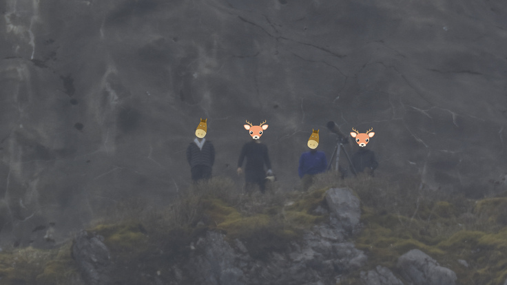 4月18日の朝、報道によって立入禁止区域の近くでイヌワシが営巣していることを知ったエビスヤ(伊吹山の山小屋)らカメラマン4人が立入禁止区域に入ってカメラを構えている。