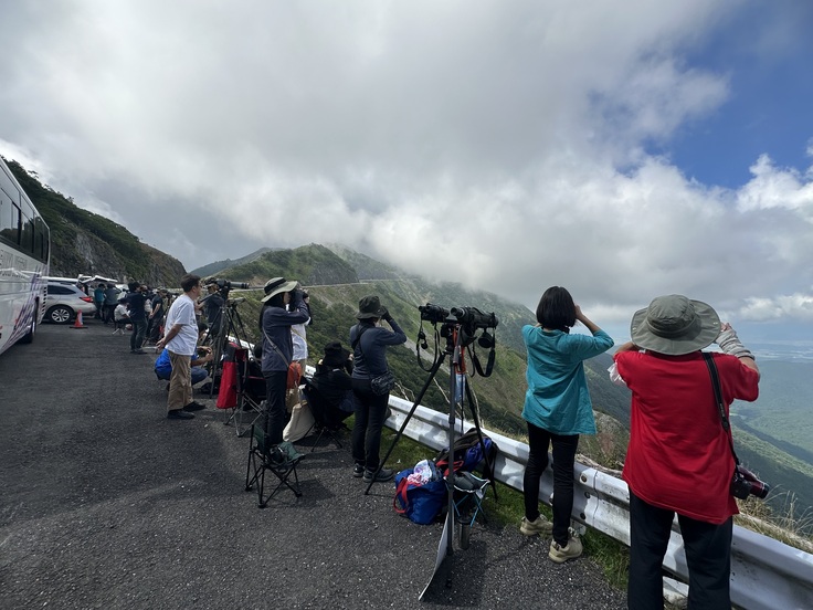 昼のトイレ休憩の時間が来た。イヌワシは成鳥が遠くに少し見えただけだ。休憩する時間も惜しいので、休憩時間を短縮して観察地点に戻った。
