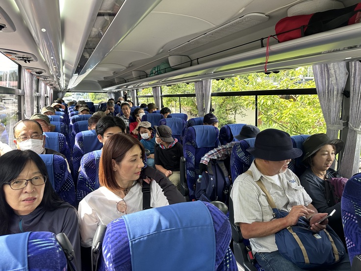 関ヶ原駅を経由してドライブウェイの入り口で全員がバスに乗車した。40名の参加者でほぼ満席になった。