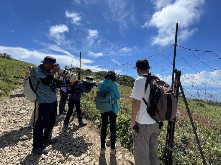 イヌワシが出てこないかと登山しながらも空を見上げて歩いた。ハヤブサ幼鳥が山頂を素早く横切った。チョウゲンボウは3回出現があり、皆でゆっくり観察ができた。