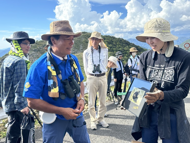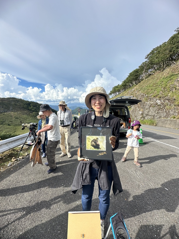 今日のファーストディスカバリー賞は、サーナの発見がなかったのでクマの発見者かイヌワシ成鳥の発見者か迷ったが、遠くを飛翔するイヌワシ成鳥を発見された和歌山県から参加の森下仁美さんに決定した。