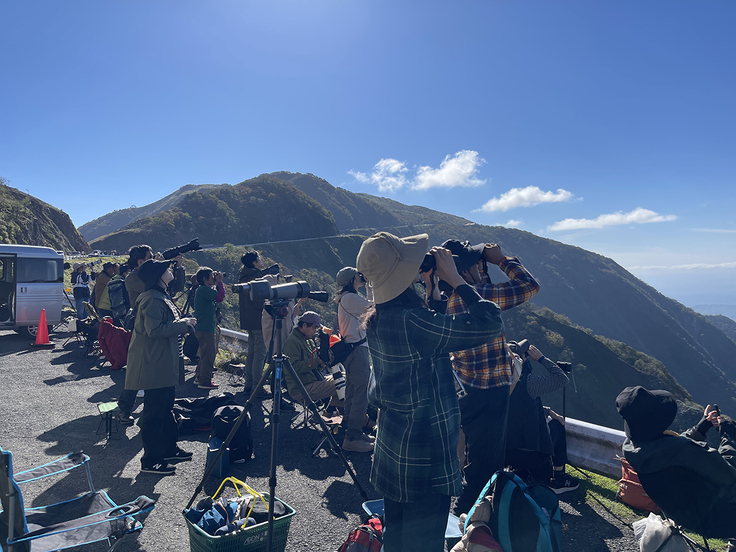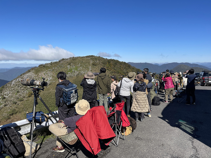 風は少ないが晴れ渡って視界は良好だ。サーナの登場に期待が膨らむ。午前中は順光で観察できるので、できるだけ早く姿を見せてほしい。僕は「イヌワシは近くにいると信じて探索してください」と伝えた。そのように考えるかどうかでイヌワシの発見には大きく影響するからだ。参加者全員が真剣にイヌワシを探す。