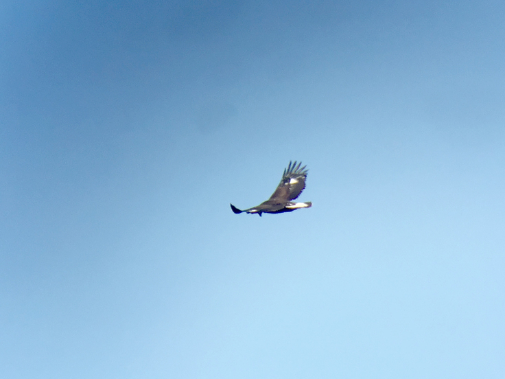 次の出現は10:49、ゆっくりと旋回後、滑翔してこちらに近づいて来る。我々の背後の丘の後ろに飛び去った。