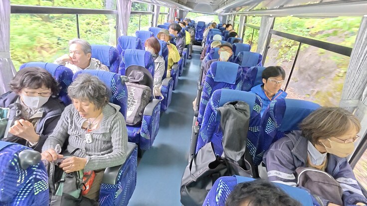13:20、観察地点を霧より下の5合目付近の駐車場に変更した。霧の中から脱出して気持ちも晴れやかになる。