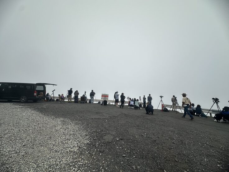 観察地点に到着した時も霧の中だった。前回も今回も天気は全く問題なく晴れるはずだったのだが...