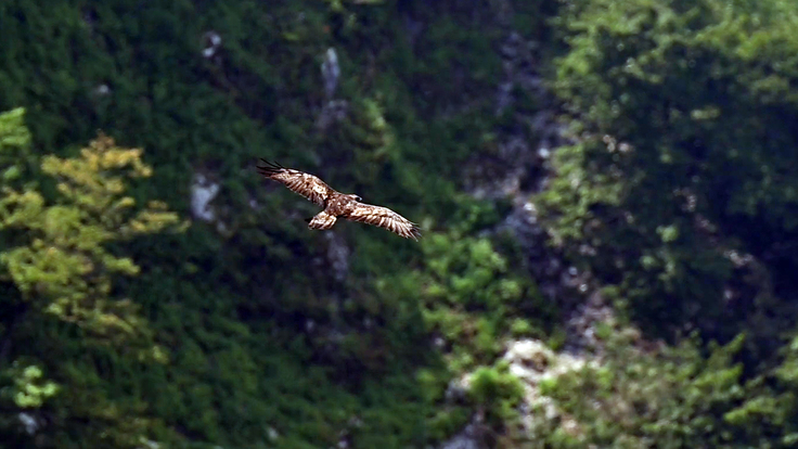 僕はイヌワシが出現した時にそのうが膨れて獲物を食べているかどうかをできるだけ確認するように心がけている。どのくらいの頻度で獲物を捕らえているのかは、その生息地の動物たちや狩り場の状況を反映しているからだ。