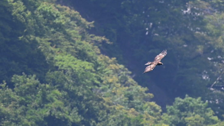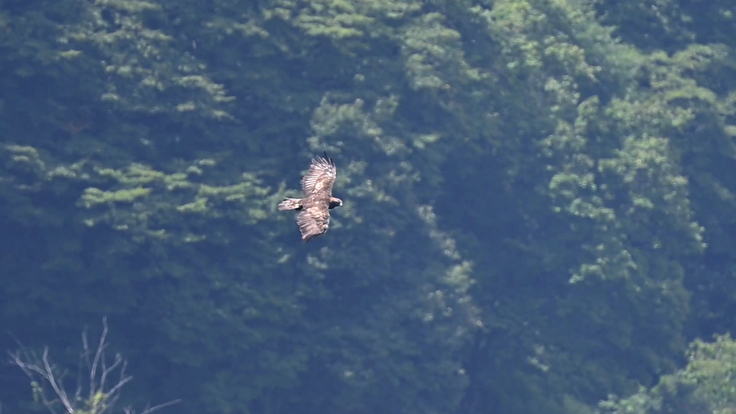 8月17日の観察会でイヌワシは12回の出現があった。イーグレットのスタッフは参加者の皆さんによりよく観察してもらうために望遠鏡などを操作しているので写真はほとんど撮影していない。