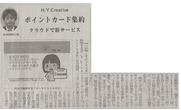 はじめまして、株式会社H.Y.CREATIVEの吉田と申します。当社は、愛知県一宮市を中心に20年にわたってIT(ICT)事業を展開しております。IT(ICT)を人々を便利に、社会を良くする為に活用出来ないかと、ずっと考えていました。そんな時、沢山のポイントカードやスタンプカードを所有している自分は、ふと、「このポイントカードが一枚になれば使う側はとても利便性がよくなるのではないか?」「無駄な資源の使用も減らせてエコ活動にもなるのでは?」と考えました。