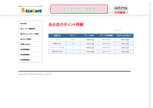 以下H-ECOCARDのユーザー様ログイン後画面に、バナー(赤枠部分)を6か月掲載します。