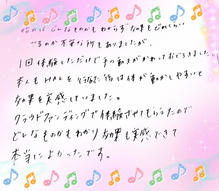 クラウドファンディング#1を行ったご利用者のご家族からお手紙をいただきました。