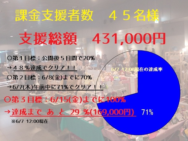 数値にすると残り29%、金額にして169,000円(※6/7 12:00現在)です。