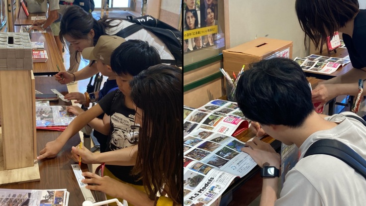 浜松ジオラマグランプリ(以下 HDGP)を観に行くと受付で全出展作品が載ったパンフレット(図録)に挟まれた投票用紙が渡される。この投票用紙はお気に入りの作品二点が書けるようになっているので展示会場に並んだ作品をパンフレットと照らし合わせながらじっくり見て、気に入った作品を選んで会場出口に設置されている投票所で作品番号を2つ書き、投票箱に入れよう。