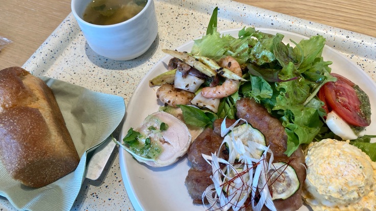 新鮮な野菜がどっさりのって美味しいのに加えこのパンの味がもう最高 !! 飲み物も付いてコスパも高いし周りの雰囲気がとっても良いです。ぜひ浜松へお越しの際にはお立ち寄り下さい。