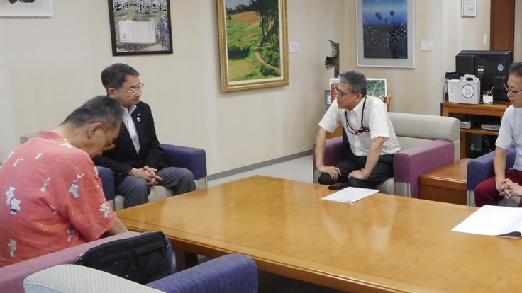 写真は7/31 市長訪問時の様子 (左からヤマタク氏、中野市長、内山理事長、鈴木)