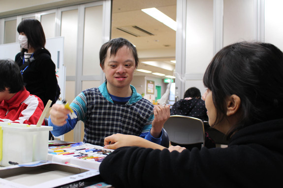 アートの活動はその仕事以外の時間。つまりリラックスの時間。重度の知的障害や自閉症を持つ方がおおいです。(中には喋れない方もいます)