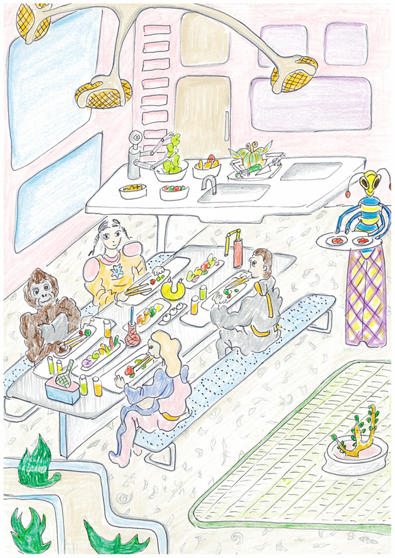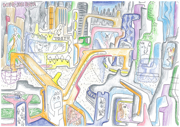 菱沼氏の可愛いイラストによる2060年渋谷の街のイメージと