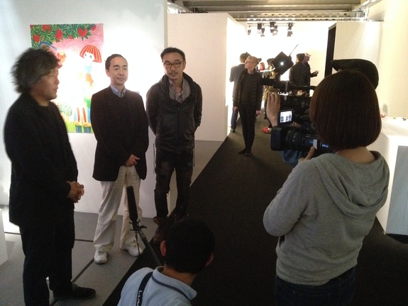 日テレBSの茂木先生の番組取材を受ける笹口さんと菱沼さん。