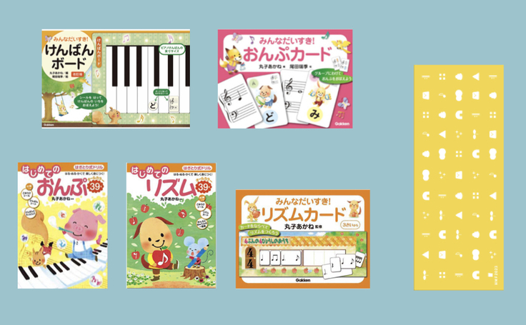 ◎幼児向け音楽導入教材5点セット(はぎとり式ドリル はじめてのおんぷ / はぎとり式ドリル はじめてのリズム / みんなだいすき! おんぷカード / みんなだいすき! リズムカード / みんなだいすき! けんばんボード 改訂版)