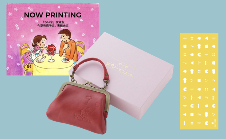 生誕60周年を迎えるみつはしちかこの名作「小さな恋のものがたり(ちい恋)」のオリジナルグッズ「チッチラブリーポシェット」と愛蔵版(今夏発売予定)のセットです。
