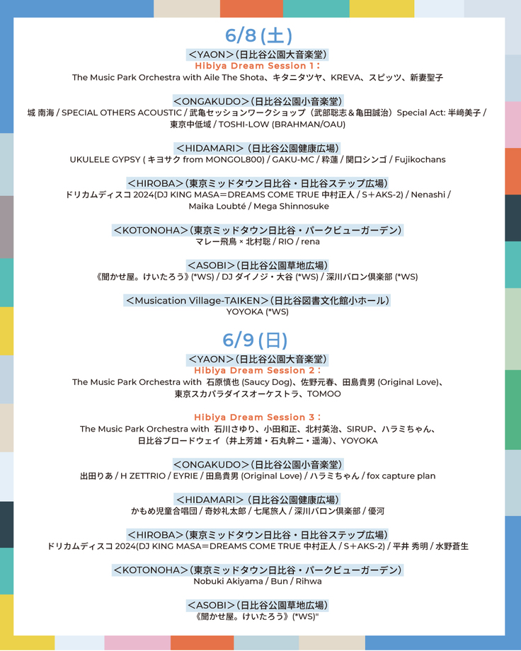 ●日比谷音楽祭2024 公式HP/公式コンテンツにお名前掲載(全角10文字/半角20文字以内、特殊文字・絵文字不可)