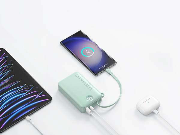 Anker Power Bank (20000mAh, 22.5W, Built-In USB-C ケーブル)はケーブル一体型で、コンパクトに持ち運びできるモバイルバッテリー。スマホ約3〜4回分の20000mAhの大容量と最大22.5Wの出力を実現し、コンパクトさとパワフルさを兼ね備えています。バッテリーは切らしたくないけど、荷物は極力減らしたい夏フェスやイベントには欠かせないアイテムです!
