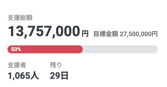皆さんからのあたたかいご支援のおかげで、今年の開催を前になんとか折り返し地点の50%を突破することができました。ご支援いただいた皆さま、拡散にご協力いただいた皆さま、改めて本当にありがとうございます!