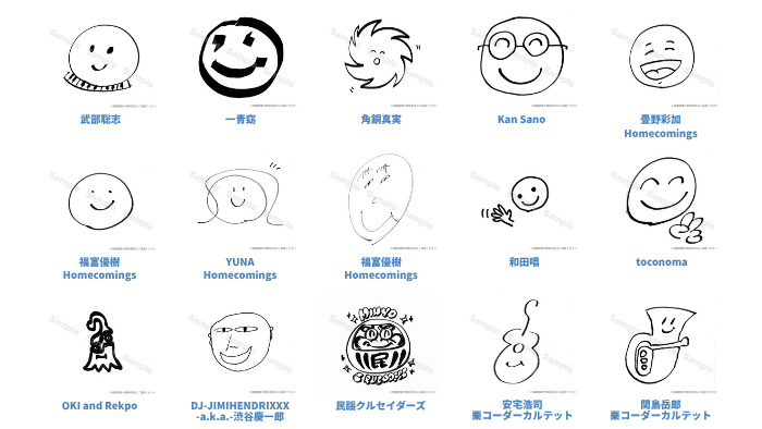 アーティストの皆さんが思い思いに描いたイラストがコラージュプリントされた、思わずほっこり笑顔になってしまうデザインです。詳細はこちらから。