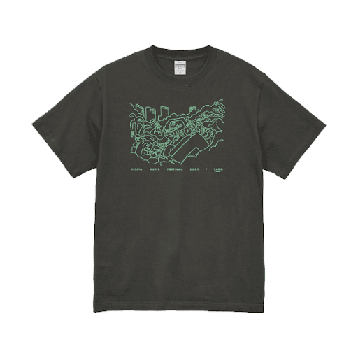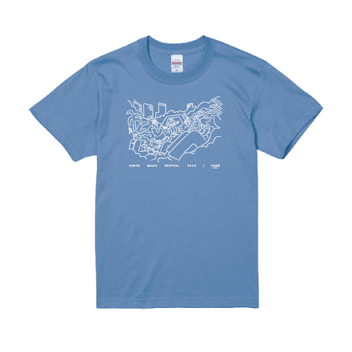 都会の真ん中にある公園の緑の中、いろんな人が集まり、それぞれの楽しみ方で音楽を感じる。そんな日比谷音楽祭の自由な空気を表せたらと思い、デザインしました。現在の3代目「野音」は今年秋から改修工事に入るため、今の姿で迎える最後の音楽祭になります。そういった背景から、イラストの中心にはそっと野音を描きました。この依頼をきっかけに日比谷音楽祭を知ったのですが、調べれば調べるほど、「みんなでつくっている」音楽祭であることが感じられました。みなさんにも、このTシャツを着て、フェスをつくる一員になってもらえたら嬉しいです。