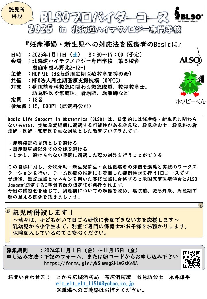 2025年1月 恵庭BLSO/HUG開催のお知らせ