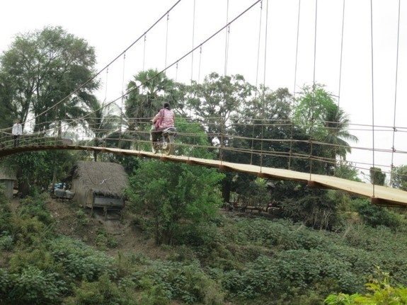 (村に行くために渡らなければならない吊り橋です。この橋を渡って建設に必要なレンガなどを運びます!)