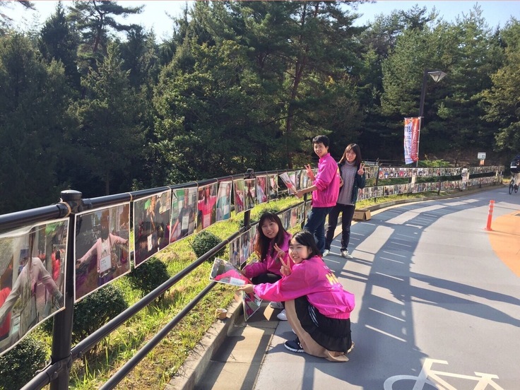 卒業生の皆様の写真を集めて、大学の外縁を埋め尽くすのが目標です。